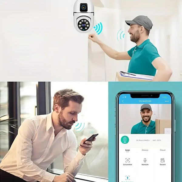 Περιστρέψτε τον φακό απομακρυσμένα από την εφαρμογή και προς τις τέσσερις κατευθύνσεις – κανένα τυφλό σημείο σε όλο το πεδίο των 360°. Ο αμφίδρομος ήχος σας επιτρέπει να μιλήσετε σε έναν οδηγό παράδοσης, να χαιρετήσετε έναν επισκέπτη ή να προειδοποιήσετε έναν εισβολέα. Υποστηρίζει κάρτες microSD έως 128 GB για συνεχή τοπική εγγραφή – όταν γεμίσει, τα παλαιότερα πλάνα αντικαθίστανται αυτόματα. Λειτουργεί σε WiFi 2.4 GHz. Λειτουργεί επίσης σε τοπική λειτουργία AP χωρίς WiFi έως 10 μέτρα.